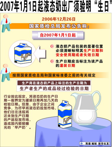 图表:2007年1月1日起液态奶出厂须验明“生日”新华社发
