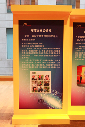 会场外展示的年度杰出公益奖—宜农贷公益理财助农平台介绍